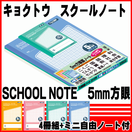 【5652】【メール便対応(2セットまで)】キョクトウ スクールノートSCHOOL NOTE 5mm方眼4冊組(ミニノート1冊おまけ付)【宅配便は32セットまで1配送です】記念品・贈り物・プレゼント・お楽しみ会にも!