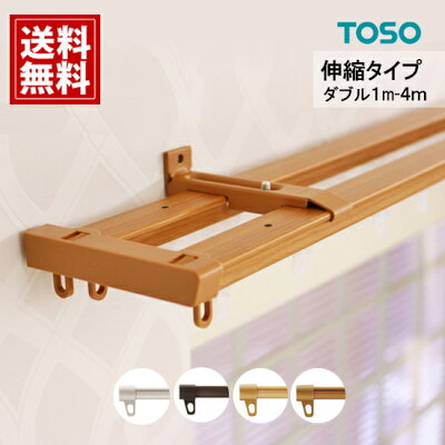 カーテンレール ダブル 【送料無料】 伸縮 1.00m 2.00m 3.00m 4.00m サイドキャップ付【TOSO】 1m 2m 3m 4m ホワイト ブラウン 木目調 おしゃれ リターン 激安 安い 人気 サイドカバー NOBITA トーソー ノビタネオ 静音ランナー 静か