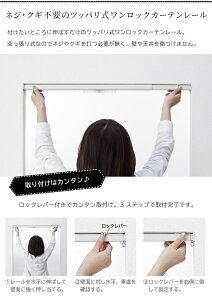 ロックレバーはこのバネによる縮みをロック! 3、別途に用意したカーテンを、レールに付属しているランナー(セット済みでのお届け)に吊るして完成! ※耐荷重はどのサイズも約2kg。