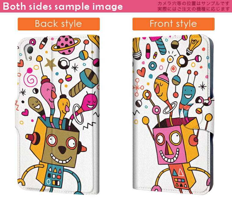 SOV31 Xperia Z4 エクスペリア au エーユー スマホ カバー 手帳型 カバー レザー ケース 手帳タイプ フリップ ダイアリー 二つ折り 革 ロボット 機械 カラフル イラスト ユニーク 008082